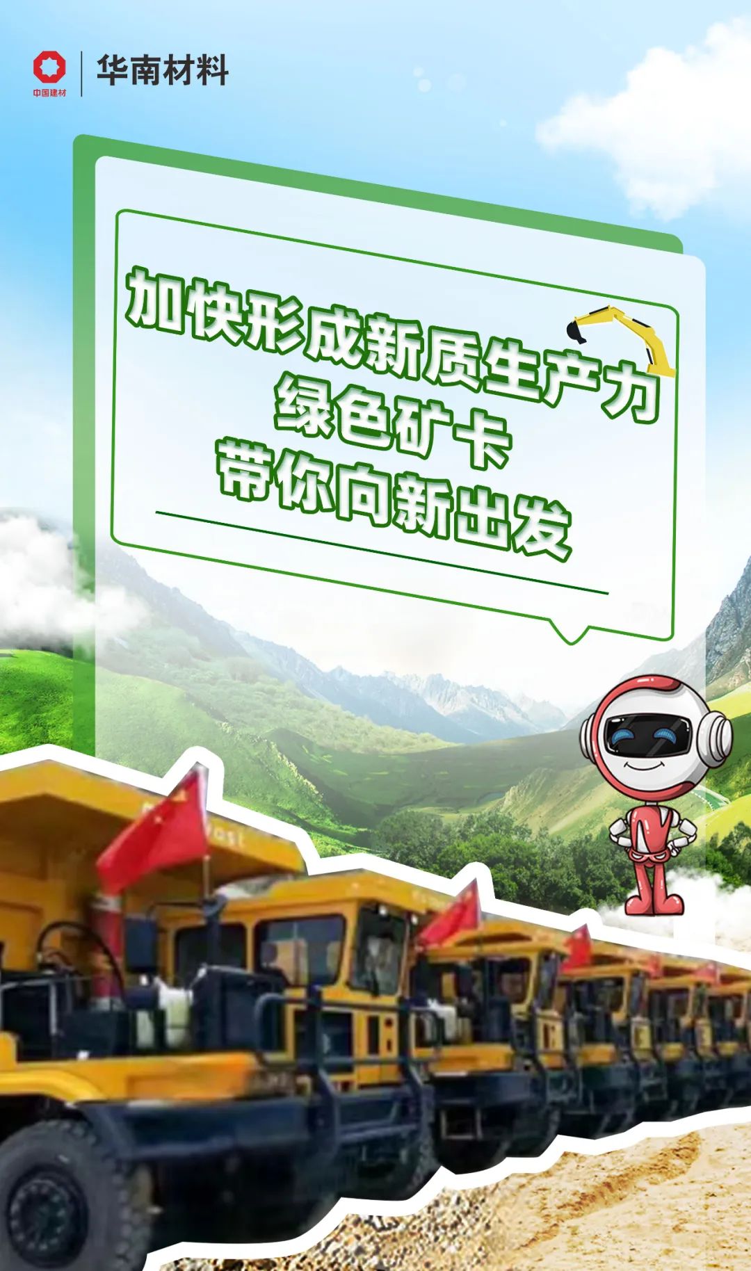華南材料把綠色環(huán)保智能理念融入礦山建設中,采用新能源電動礦卡,破解節(jié)能降耗“密碼”。