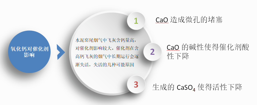 由于水泥粉塵中含有較高的氧化鈣,對(duì)催化劑影響較大,催化劑在含高鈣飛灰的煙氣中長(zhǎng)期運(yùn)行會(huì)逐漸失活。