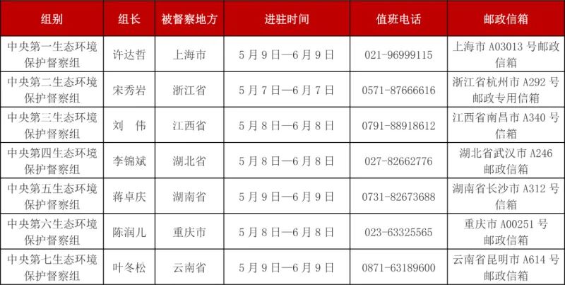 第三輪第二批中央生態(tài)環(huán)境保護(hù)督察進(jìn)駐一覽表