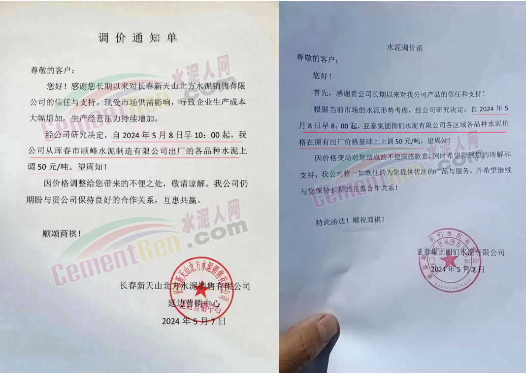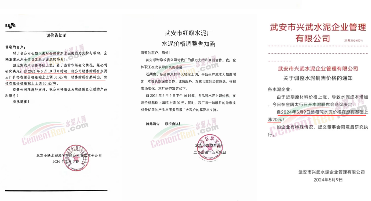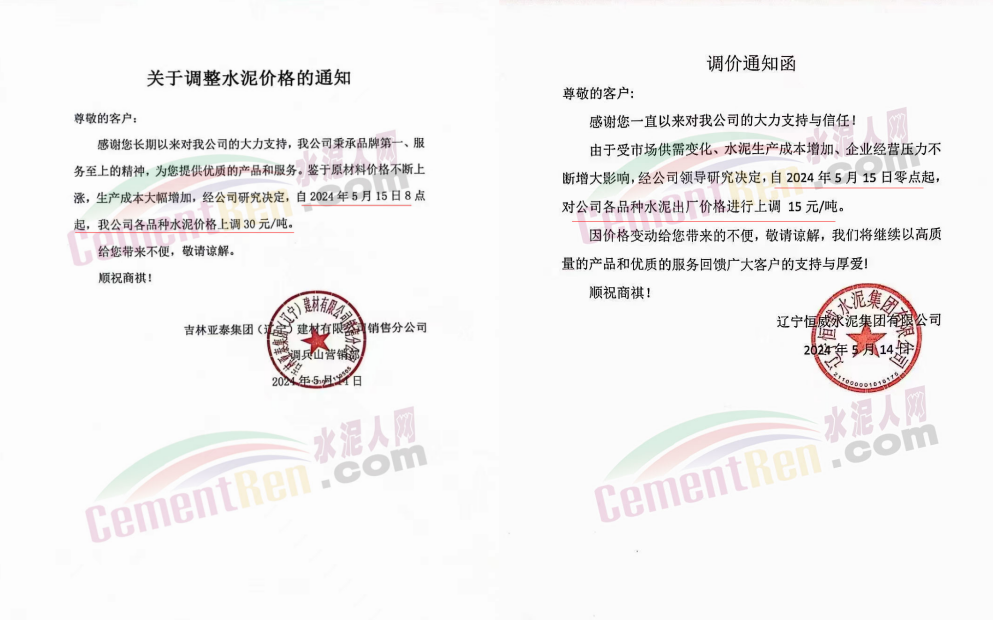 同期遼寧、吉林、黑龍江、河北、河南、重慶等多地水泥企業(yè)通知上調(diào)水泥價格30-50元/噸。