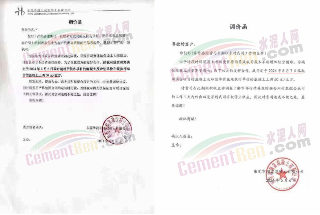 東莞市建安混凝土有限公司通知,目前市政府聯(lián)合交通、運管和其他相關(guān)部門,嚴(yán)控運輸車輛超限超載,并且嚴(yán)禁早晚高峰運輸且要按規(guī)定線路進(jìn)行風(fēng)險識別管理,造成混凝土原材料成本和運輸成本成倍增長,致使混凝土企業(yè)虧損嚴(yán)重,造成生產(chǎn)、經(jīng)營等極度困難,已無力為繼。受此影響,公司對各強(qiáng)度等級混凝土、砂漿在現(xiàn)結(jié)算價格基礎(chǔ)上上調(diào)50元/立方米。