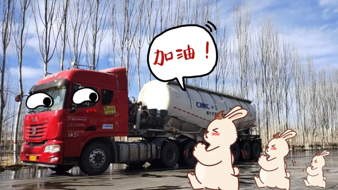 我是來自喀和銷售分公司的水泥運輸車,我的口號是:按時發(fā)車,一路前行,風里雨里只為你。
