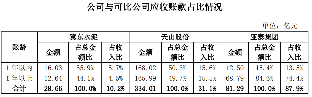 注:山水水泥、天瑞水泥2023年暫未披露應收賬款賬齡相關信息。