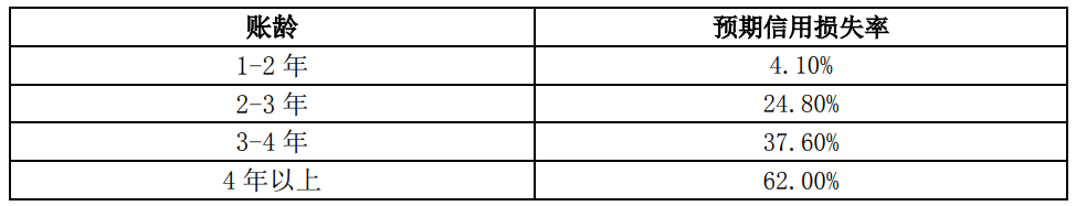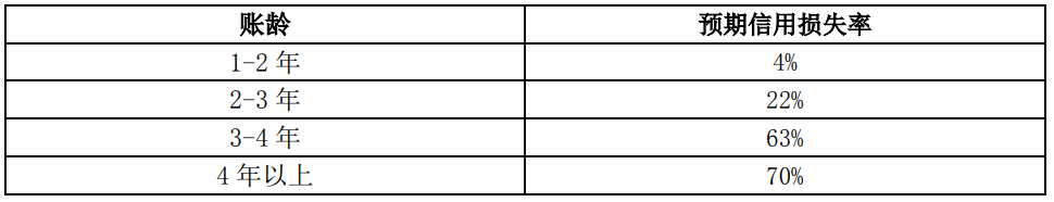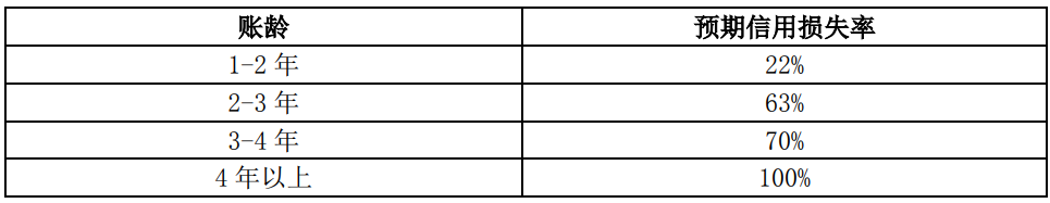 1年以上壞賬計提比例確認依據(jù)為以賬齡表為基礎的減值矩陣模型計算得出的預期信用損失率,是在賬齡分析法的基礎上利用遷徙率對歷史損失率進行估計,并在考慮前瞻信息后對信用損失進行預測。