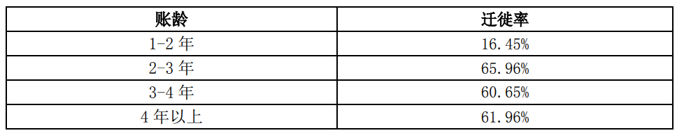 公司2023年12月31日復核計算近5年(2018-2022年)公司應收賬款遷徙率均值如下: