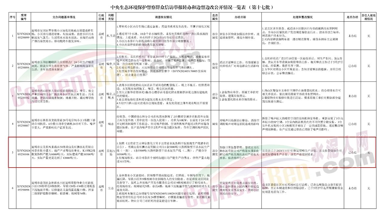 昆明市政府官網2024年6月5日消息:截至2024年6月5日,對中央第七生態(tài)環(huán)境保護督察組向昆明市移交的第十七批群眾信訪舉報件48件,各責任單位均按要求上報調查處理情況。以下為中央生態(tài)環(huán)境保護督察群眾信訪舉報轉辦和邊督邊改公開情況一覽表(第十七批)。