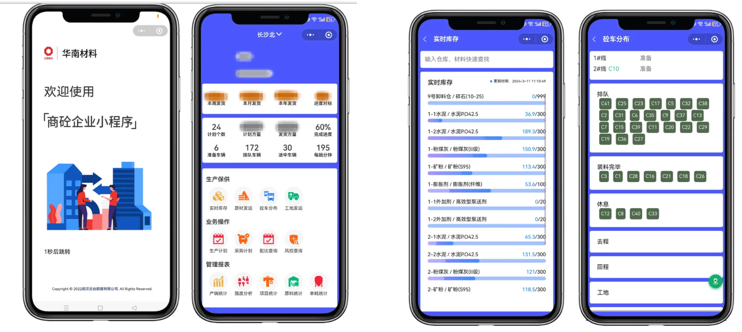 上線商砼APP小程序,實現(xiàn)可視化場景共享。隨時通過手機關(guān)注產(chǎn)品銷售、結(jié)算、對賬等相關(guān)信息,搭載信息化指揮平臺,將一體化生產(chǎn)調(diào)度系統(tǒng)與信息化控制系統(tǒng)實現(xiàn)互聯(lián)。