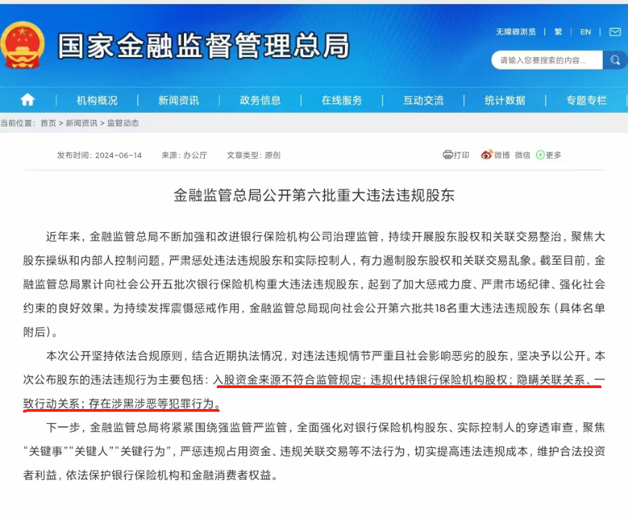 截至目前,金融監(jiān)管總局累計(jì)向社會(huì)公開五批次銀行保險(xiǎn)機(jī)構(gòu)重大違法違規(guī)股東,懲處違法違規(guī)股東和實(shí)際控制人,對(duì)于股東股權(quán)和關(guān)聯(lián)交易整治問題嚴(yán)肅治理。