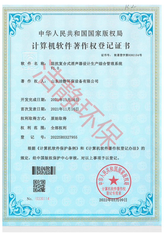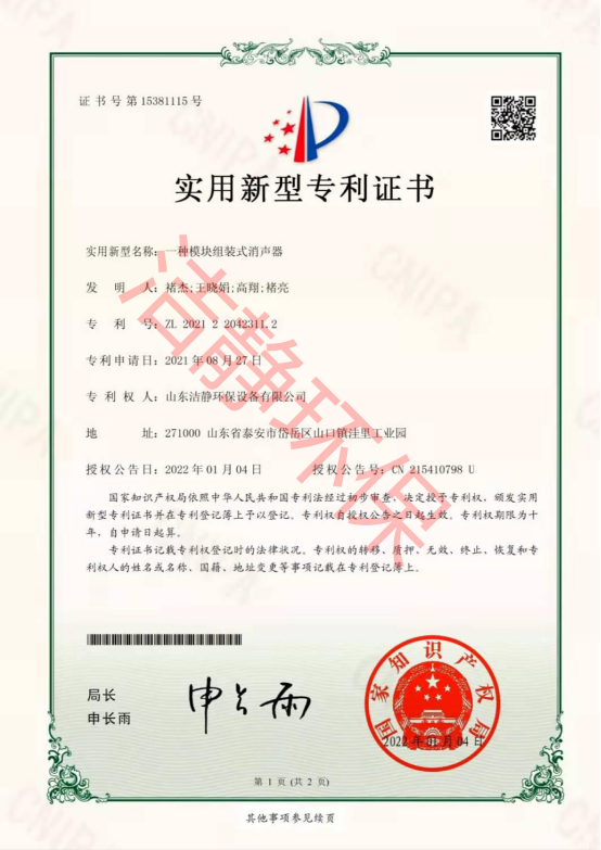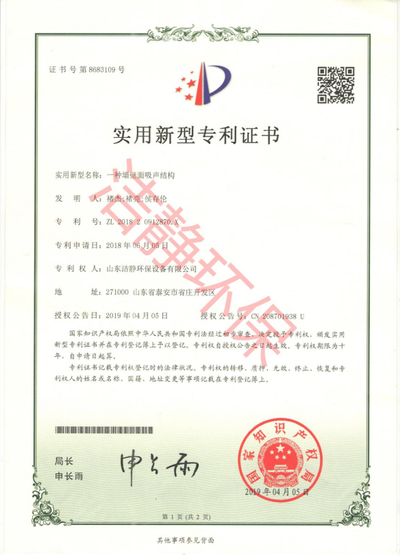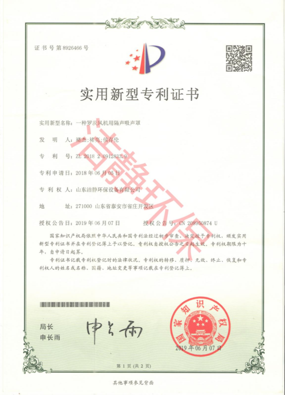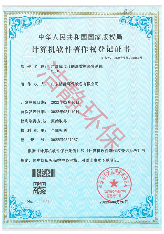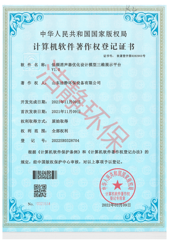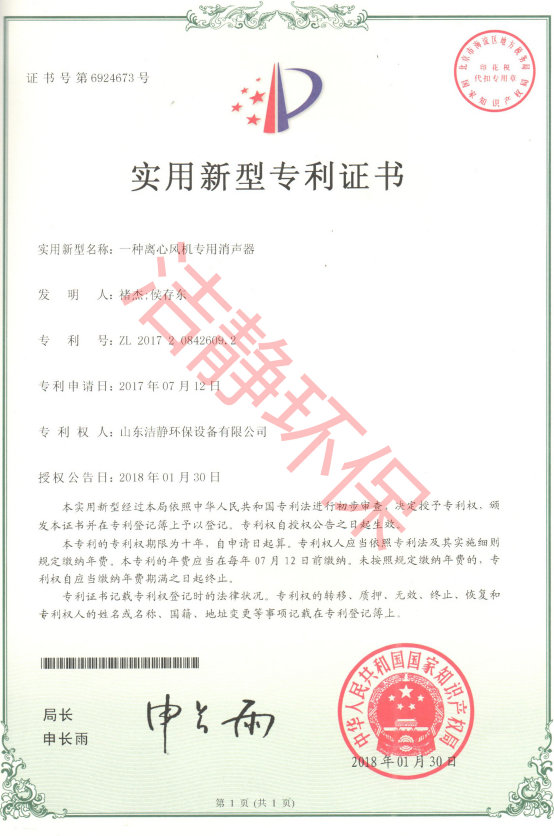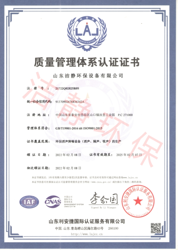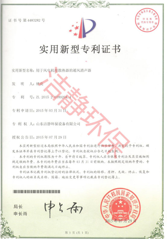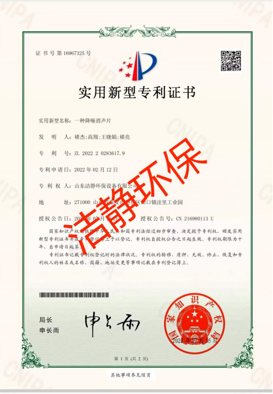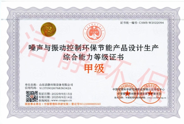 公司已通過質(zhì)量體系認(rèn)證、環(huán)境管理體系認(rèn)證、職業(yè)健康安全體系認(rèn)證,擁有各類消聲器、隔聲罩(房)、吸聲結(jié)構(gòu)、聲屏障等專利17項,消聲降噪設(shè)備計算機(jī)軟件著作權(quán)14項,各類產(chǎn)品權(quán)威部門的檢測報告13項,環(huán)保工程專業(yè)承包二級等相關(guān)設(shè)計施工資質(zhì)。是國內(nèi)歷史久、專利多、質(zhì)量一流的噪聲工程類專業(yè)環(huán)保公司之一,是集現(xiàn)場檢測、測繪、設(shè)計、生產(chǎn)、安裝施工、調(diào)試、售后等一條龍服務(wù)的公司。