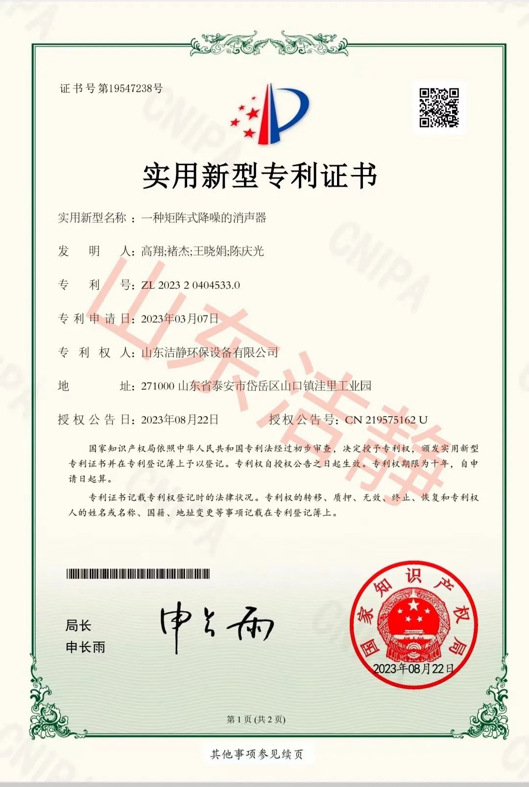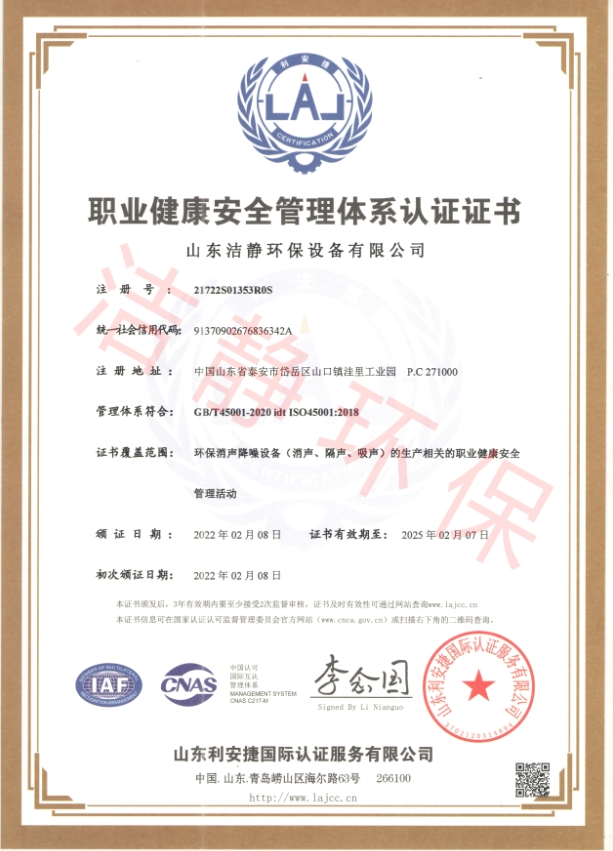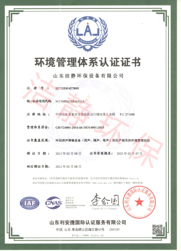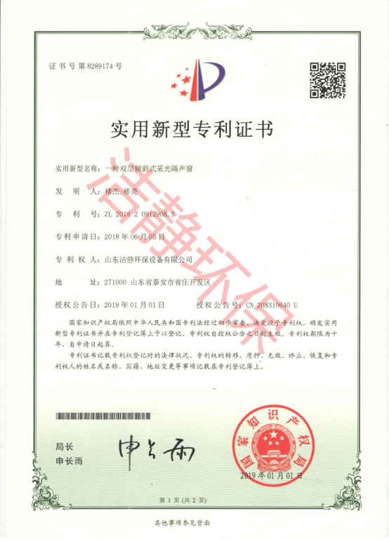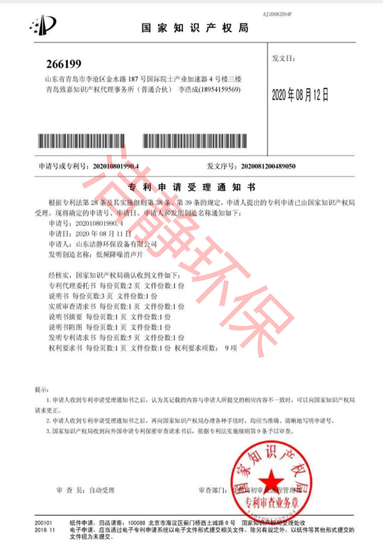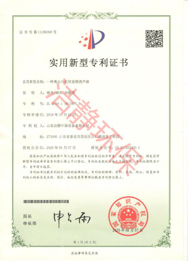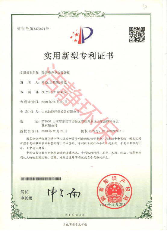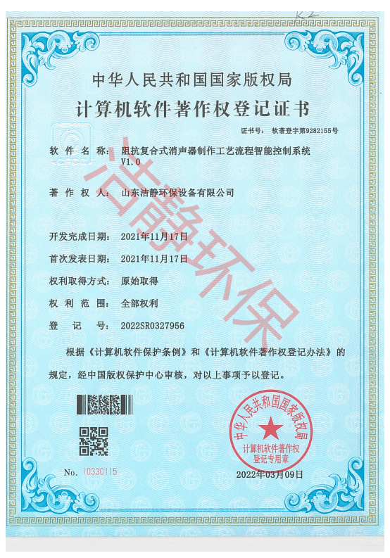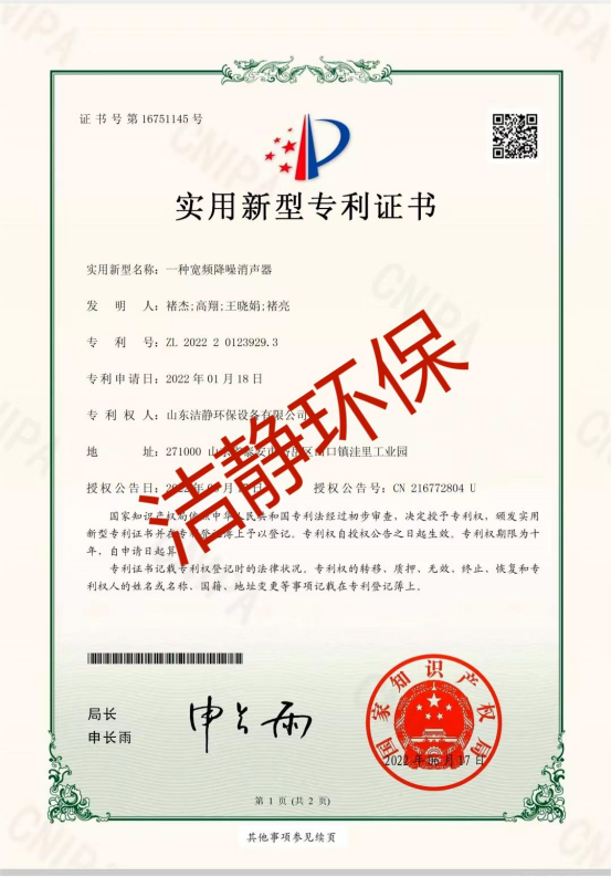 公司已通過質(zhì)量體系認(rèn)證、環(huán)境管理體系認(rèn)證、職業(yè)健康安全體系認(rèn)證,擁有各類消聲器、隔聲罩(房)、吸聲結(jié)構(gòu)、聲屏障等專利17項,消聲降噪設(shè)備計算機(jī)軟件著作權(quán)14項,各類產(chǎn)品權(quán)威部門的檢測報告13項,環(huán)保工程專業(yè)承包二級等相關(guān)設(shè)計施工資質(zhì)。是國內(nèi)歷史久、專利多、質(zhì)量一流的噪聲工程類專業(yè)環(huán)保公司之一,是集現(xiàn)場檢測、測繪、設(shè)計、生產(chǎn)、安裝施工、調(diào)試、售后等一條龍服務(wù)的公司。