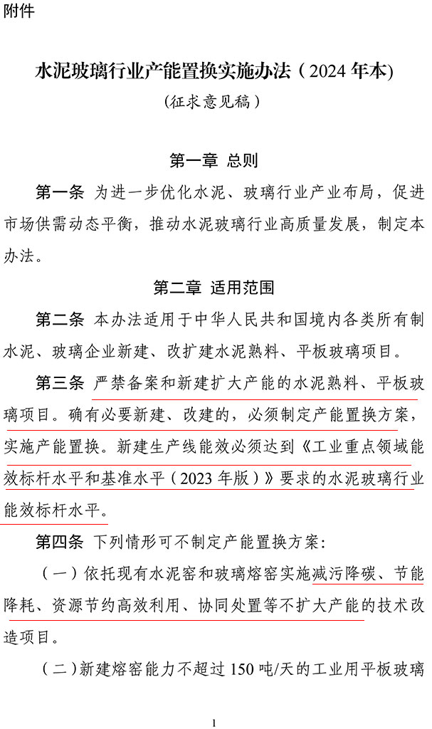敲黑板畫(huà)重點(diǎn)!《水泥玻璃行業(yè)產(chǎn)能置換實(shí)施辦法(2024 年本)(征求意見(jiàn)稿)》全文如下: