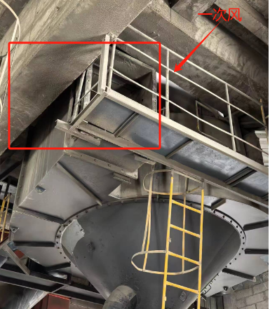 A、改變?nèi)隽媳P機(jī)械分散為氣流分散。原設(shè)計(jì)選粉機(jī)傳動軸為兩節(jié),依靠聯(lián)軸器連接,分別將動力傳遞給轉(zhuǎn)籠和撒料盤。改進(jìn)解除了聯(lián)軸器及其撒料盤軸和撒料盤,新設(shè)計(jì)了四個(gè)二次風(fēng)進(jìn)口以及與其配套的進(jìn)料管(見圖四中圖②-②)