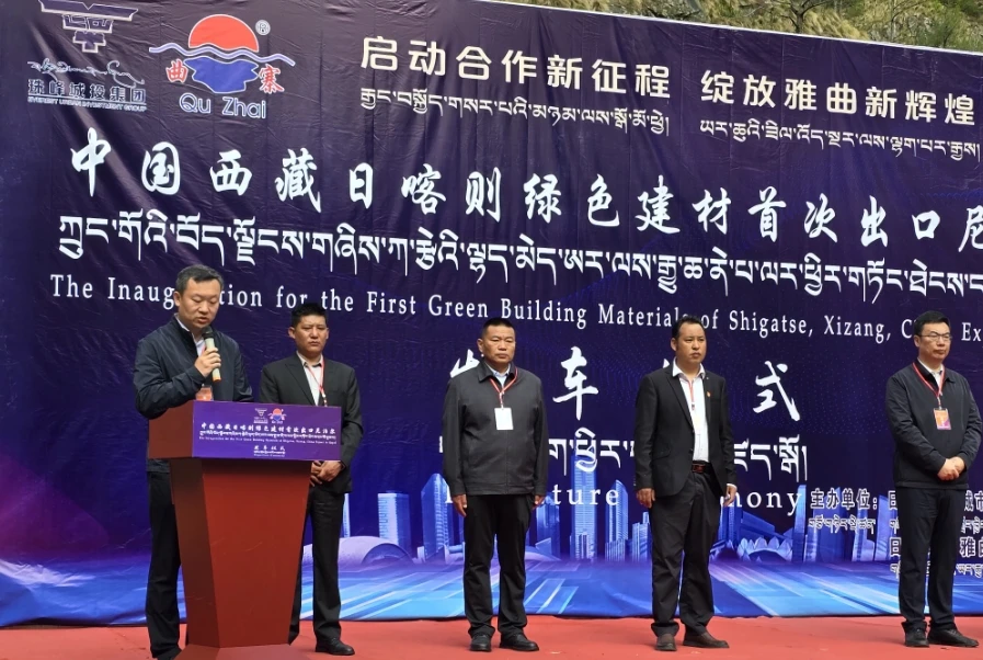 6月27日上午,珠峰城投集團(tuán)雅曲水泥(西藏綠色建材)首次出口尼泊爾發(fā)車通關(guān)儀式在吉隆口岸成功舉行。 這批綠色建材產(chǎn)品總出口量約為8000噸,將分批次發(fā)往尼泊爾,用于援尼項(xiàng)目建設(shè)。
