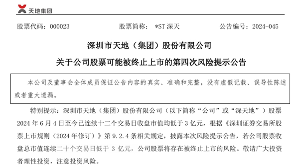 同時,*ST深天進一步提及,公司近期因受到下游行業(yè)需求下降以及市場過度競爭等不利因素影響,行業(yè)運行艱難程度增加,資金周轉(zhuǎn)壓力持續(xù)增加。