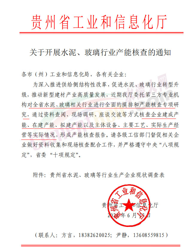 日前,貴州省工信廳發(fā)布《關(guān)于開(kāi)展水泥、玻璃行業(yè)產(chǎn)能核查的通知》給轄區(qū)各市(州)工業(yè)和信息化局,各有關(guān)企業(yè)稱(chēng),為深入推進(jìn)供給側(cè)結(jié)構(gòu)性改革,促進(jìn)水泥、玻璃行業(yè)轉(zhuǎn)型升級(jí),推動(dòng)新型建材產(chǎn)業(yè)高質(zhì)量發(fā)展,近期貴州省工信廳廳委托第三方專(zhuān)業(yè)機(jī)構(gòu)對(duì)全省水泥、玻璃相關(guān)行業(yè)進(jìn)行全面的摸排和產(chǎn)能核查專(zhuān)項(xiàng)研究,通過(guò)資料查閱、現(xiàn)場(chǎng)調(diào)研、座談交流等方式核查企業(yè)建成產(chǎn)能、在建產(chǎn)能、擬建產(chǎn)能以及主體設(shè)備、主要工藝、實(shí)際生產(chǎn)經(jīng)營(yíng)等實(shí)際情況,形成產(chǎn)能核查報(bào)告。請(qǐng)各級(jí)工信部門(mén)督促相關(guān)企業(yè)做好資料收集和現(xiàn)場(chǎng)核查配合工作,并嚴(yán)格遵守中央“八項(xiàng)規(guī)定”,省委“十項(xiàng)規(guī)定”。