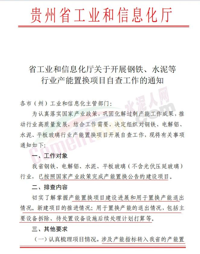 貴州省工信廳同期發(fā)布《關(guān)于開(kāi)展鋼鐵、水泥等行業(yè)產(chǎn)能置換項(xiàng)目自查工作的通知》稱(chēng),為認(rèn)真落實(shí)國(guó)家產(chǎn)業(yè)政策,鞏固化解過(guò)剩產(chǎn)能工作成果,推動(dòng)行業(yè)高質(zhì)量發(fā)展,結(jié)合工作需要,決定組織對(duì)鋼鐵、電解鋁、水泥、平板玻璃行業(yè)產(chǎn)能置換項(xiàng)目開(kāi)展自查工作。