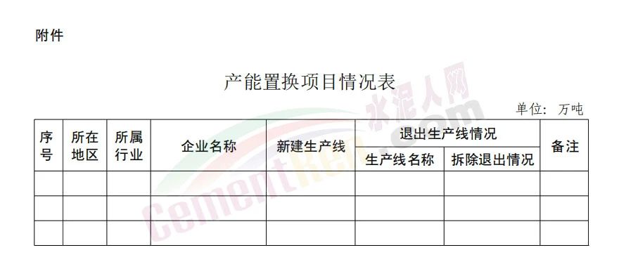 在對(duì)本地區(qū)產(chǎn)能置換項(xiàng)目進(jìn)行全面梳理基礎(chǔ)上,形成本地區(qū)鋼鐵、電解鋁、水泥、平板玻璃產(chǎn)能置換推進(jìn)情況報(bào)告,連同產(chǎn)能置換完成情況表(附件),于2024年6月28日前書(shū)面正式反饋省工業(yè)和信息化廳。已完成產(chǎn)能置換公告但未實(shí)質(zhì)性建設(shè)的項(xiàng)目,在與企業(yè)充分溝通基礎(chǔ)上,明確項(xiàng)目的后續(xù)建設(shè)進(jìn)度安排以及相關(guān)具體處置計(jì)劃。