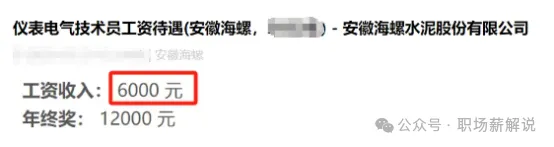 員工5:該爆料者是海螺水泥的一名儀表電氣技術(shù)員,他現(xiàn)在每個月的工資收入是6000元,年終獎金是發(fā)2個月的工資,也就是十四薪了。五險一金這個福利,他沒有提到。