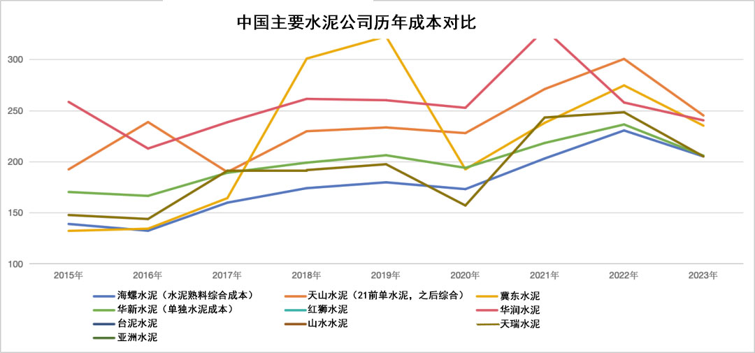 從水泥企業(yè)公開數(shù)據(jù)可見,近三年來海螺、冀東、華新、臺泥、亞泥、紅獅、山水、華潤、天瑞等成本處于持續(xù)下降狀態(tài)。由此也可佐證,水泥江湖高手之間的較量是在“成本端”。