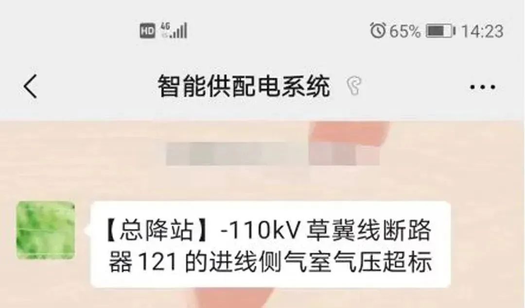 2024年1月5日,該企業(yè)智能供配電管理系統(tǒng)發(fā)出“【總降站】-110kV草冀線路斷路器121的進線側(cè)氣室氣壓超標”告警。