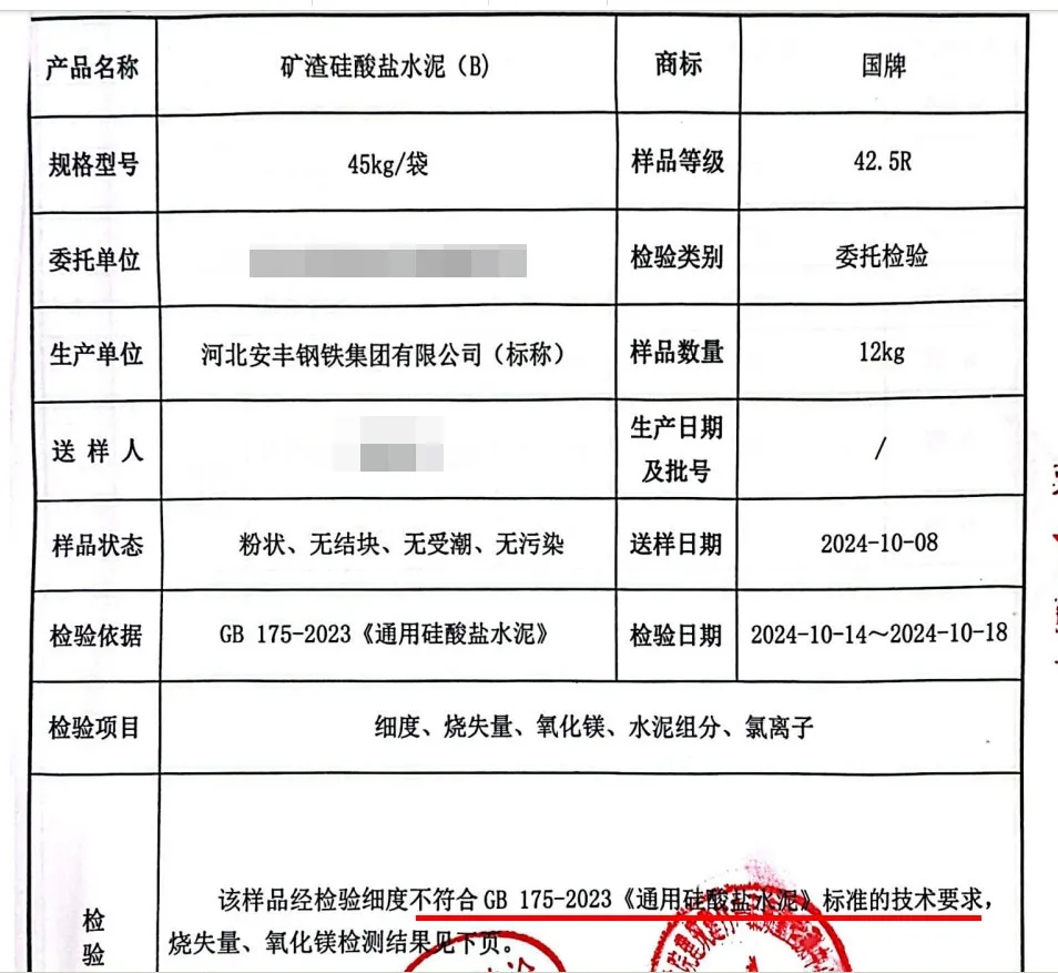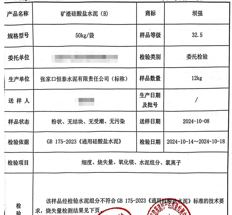 2024年10月30日,河北省市場監(jiān)管局通報(bào),流通領(lǐng)域抽樣發(fā)現(xiàn)河北京蘭水泥有限公司一批次普通硅酸鹽水泥(P.O42.5)不合格,不合格項(xiàng)目為氯離子。