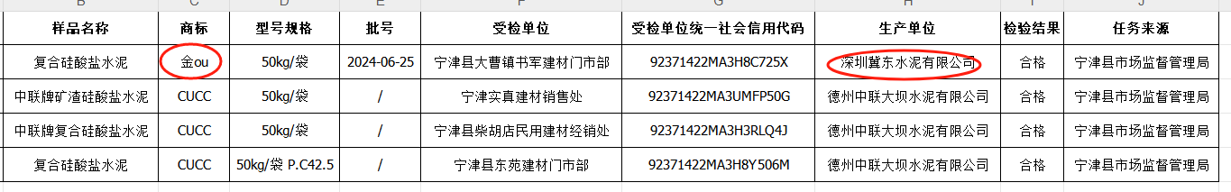 山東省德州市寧津縣人民政府網站11月27日發(fā)布2024年第一批工業(yè)產品檢驗結果,流通領域4批次水泥全部合格。