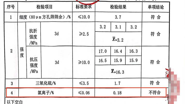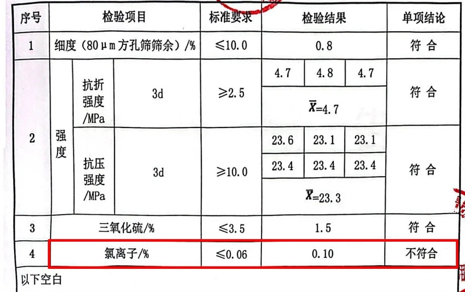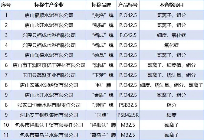 內蒙古包頭市兩批次水泥氯離子不合格