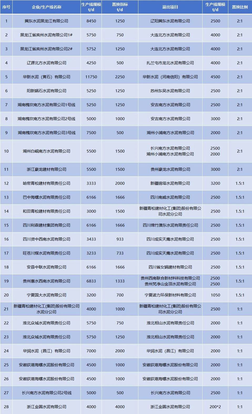 據(jù)水泥人網(wǎng)不完全統(tǒng)計,2025年以來,海螺水泥、金隅冀東等十大頭部集團(tuán)及區(qū)域龍頭企業(yè)均有補(bǔ)充產(chǎn)能項目,其中巴中海螺、華新水泥等企業(yè)的單線置換規(guī)模超過6000t/d。從置換比例看,70%以上的項目執(zhí)行1.5:1或更高標(biāo)準(zhǔn),部分項目置換比例達(dá)2:1.