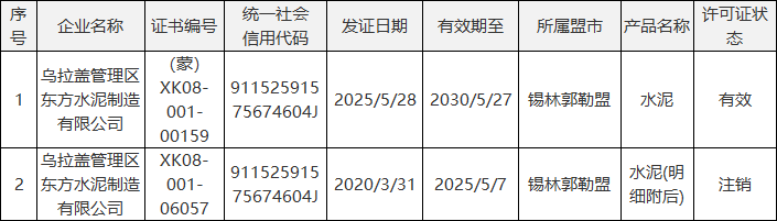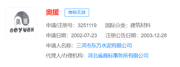 在梳理抽檢信息時發(fā)現(xiàn),部分不合格企業(yè)還存在資質(zhì)與商標(biāo)使用不規(guī)范問題,涉嫌違反相關(guān)管理規(guī)定。烏拉蓋管理區(qū)東方水泥制造有限公司成為典型案例。該企業(yè)生產(chǎn)的“奧援”牌礦渣硅酸鹽水泥(P.S.A42.5),不僅氯離子檢測不合格,還存在雙重違規(guī):一是生產(chǎn)許可證編號“XK08-001-006057”已處于注銷狀態(tài),企業(yè)雖已申請新證“(蒙)XK08-001-00159”,但產(chǎn)品包裝未及時更新標(biāo)注;二是所使用的“奧援”商標(biāo),實際歸屬三河市東方水泥有限公司,且當(dāng)前商標(biāo)狀態(tài)為“無效”,涉嫌違規(guī)使用他人失效商標(biāo)。